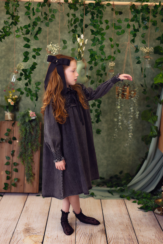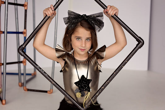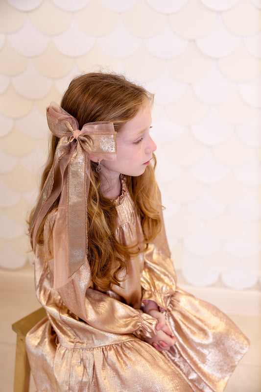 Primrose Princess Long Tail Bow Clip - Black/Gold