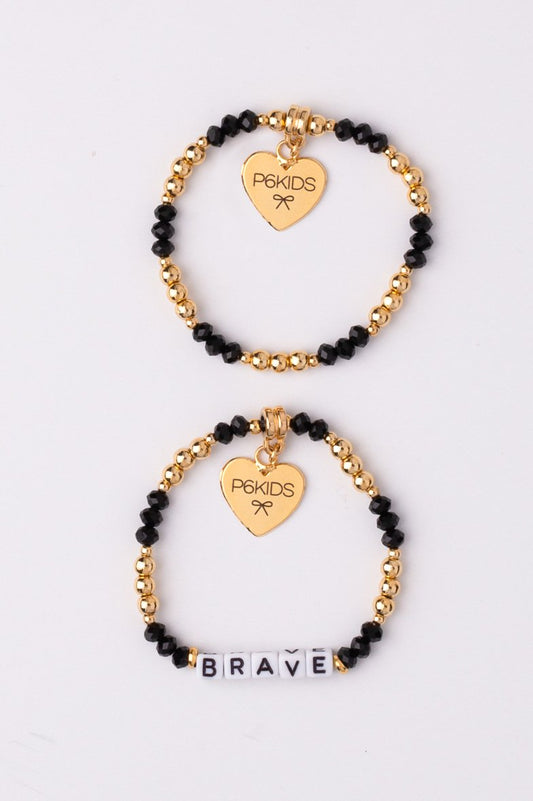 Power Mantra Bracelet Set - Black/Gold - "BRAVE"