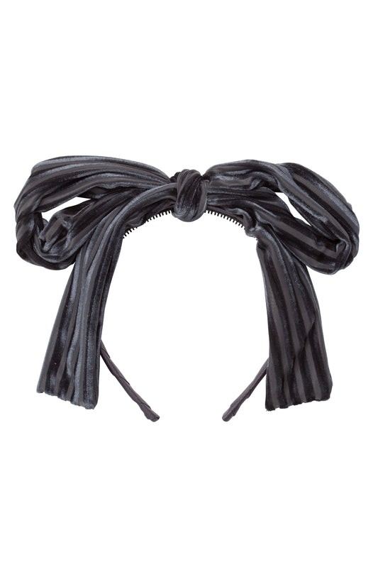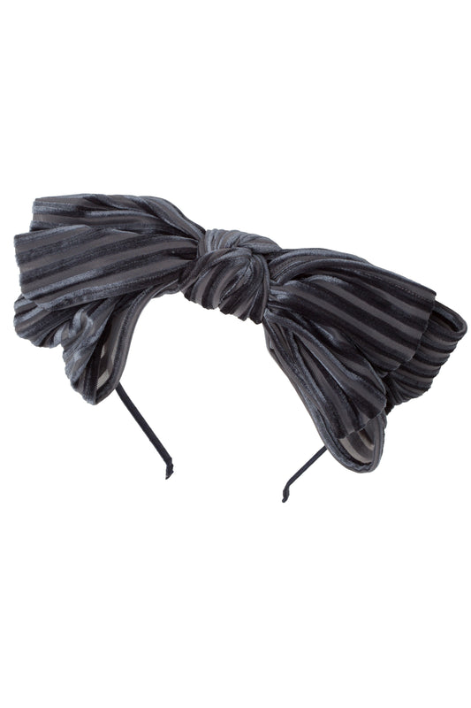 Party Bow Headband - Charcoal Velvet Stripe