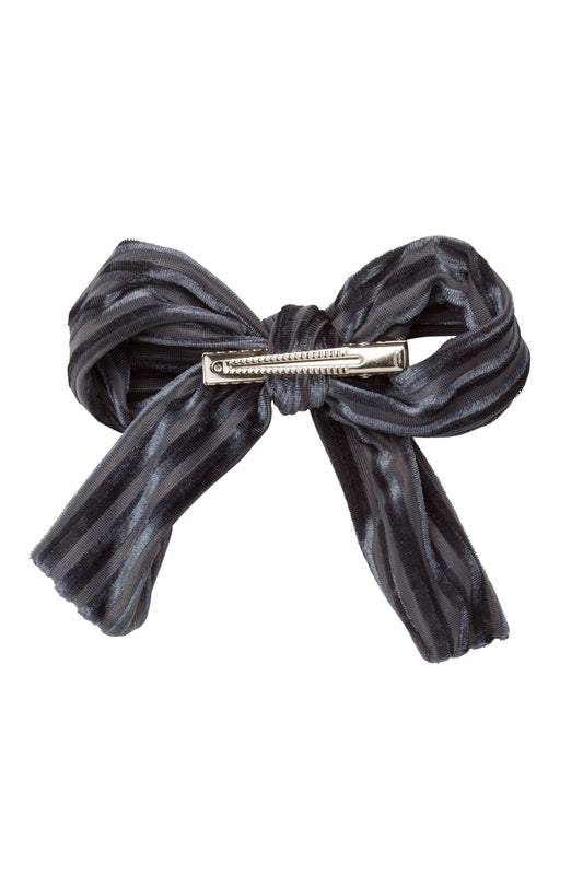 Party Bow Clip - Charcoal Velvet Stripe