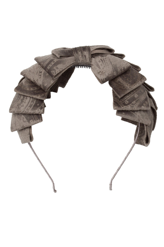 Pleated Ribbon Headband - Smoke Grey Paisley Suede