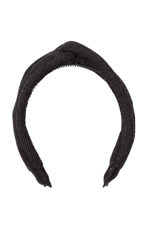 Knot Herringbone Headband - Charcoal/BW
