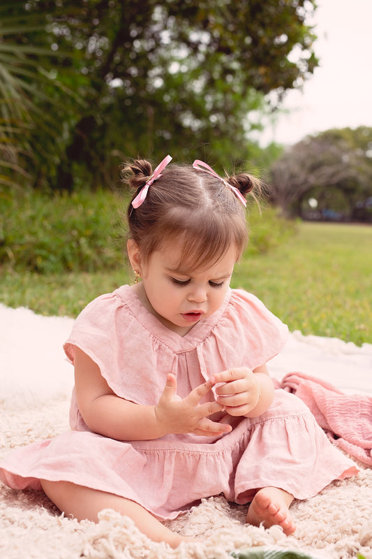Piper Bow Long Satin Clip - Petal Peach