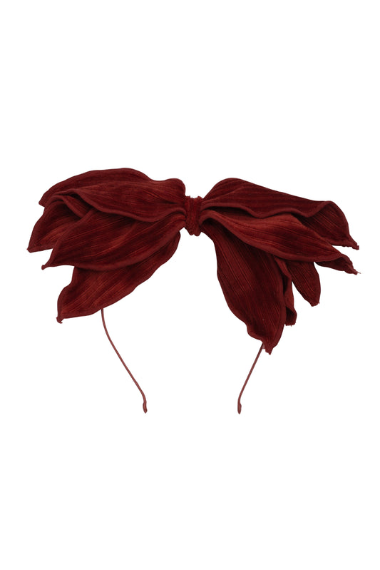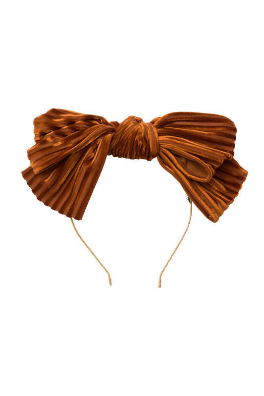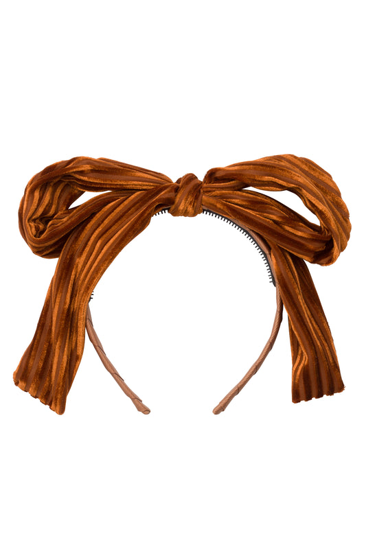Party Bow Headband - Rust Velvet Stripe