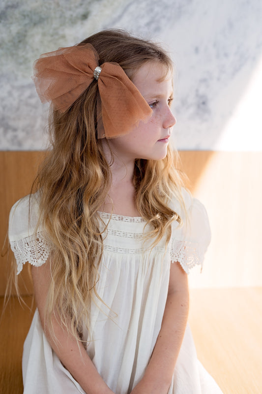 Madeline Petersham Long Tail Bow Clip - Caramel