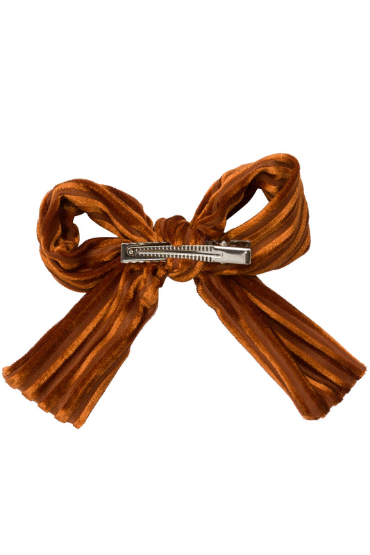 Sold outParty Bow Clip - Rust Velvet Stripe
