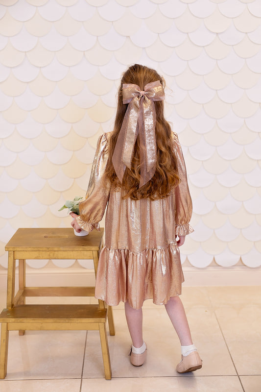 Primrose Princess Long Tail Bow Clip - Sweet Nectar/Metallic
