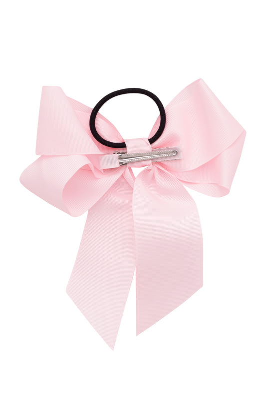 Oversized Bow Pony/Clip - Powder Pink Grosgrain