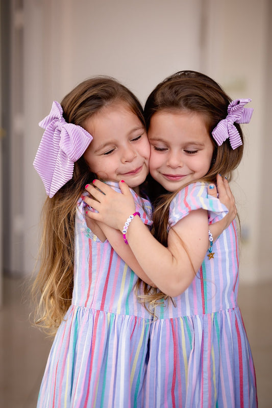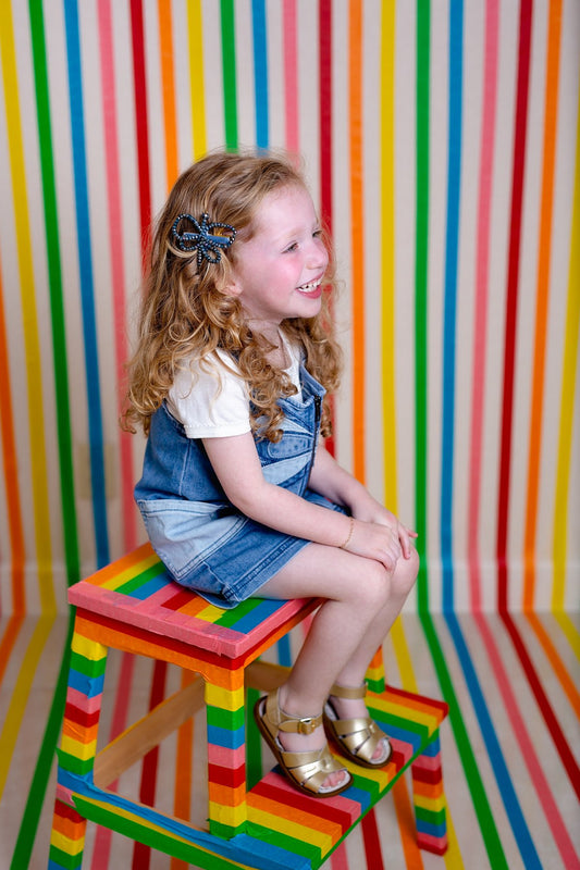 A few months ago, when I was designing this collection, I saw the most beautiful rainbow I have ever seen in my 31 years on earth. Each color was so strong and defined. I could not take my eyes off it until it disappeared. As I watched, I thought "this is exactly what the world needs right now". We've been living in fear, in what feels like a colorless bland world. So here we are with a collection that brings out colors. I used glass beads for some of the designs because they're almost reflective, the light passes through like a rainbow. Plus, I've always loved my bead collection, yet never brought them to Project6nykids. It's time! I hope this collection brings you some color and beauty to your day!