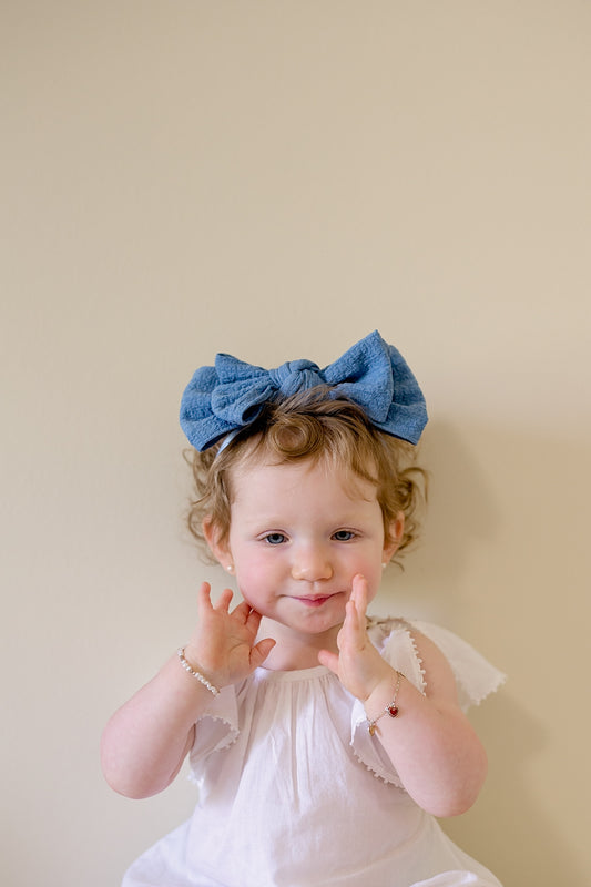 Grosgrain Bow Clip Set (2) - Smoke Blue