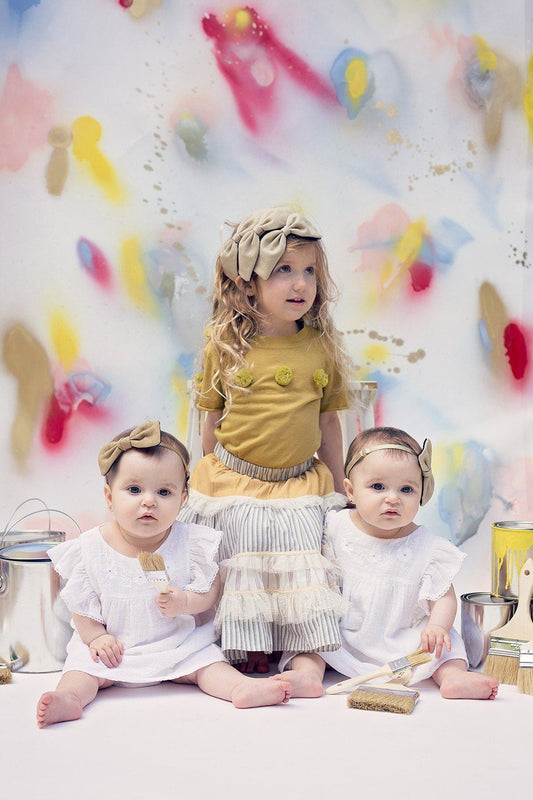 Bunnie Bow Wrap - Blush/Gold Feather Print