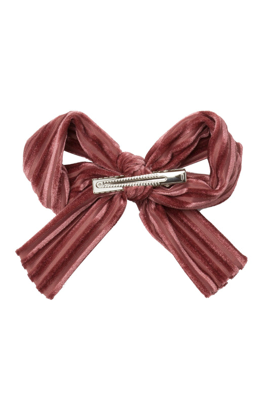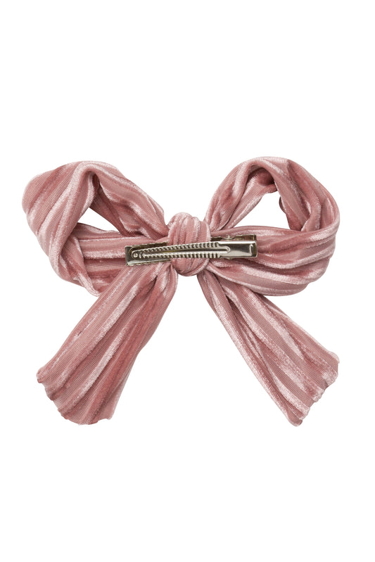 Sold outParty Bow Clip - Blush Velvet Stripe
