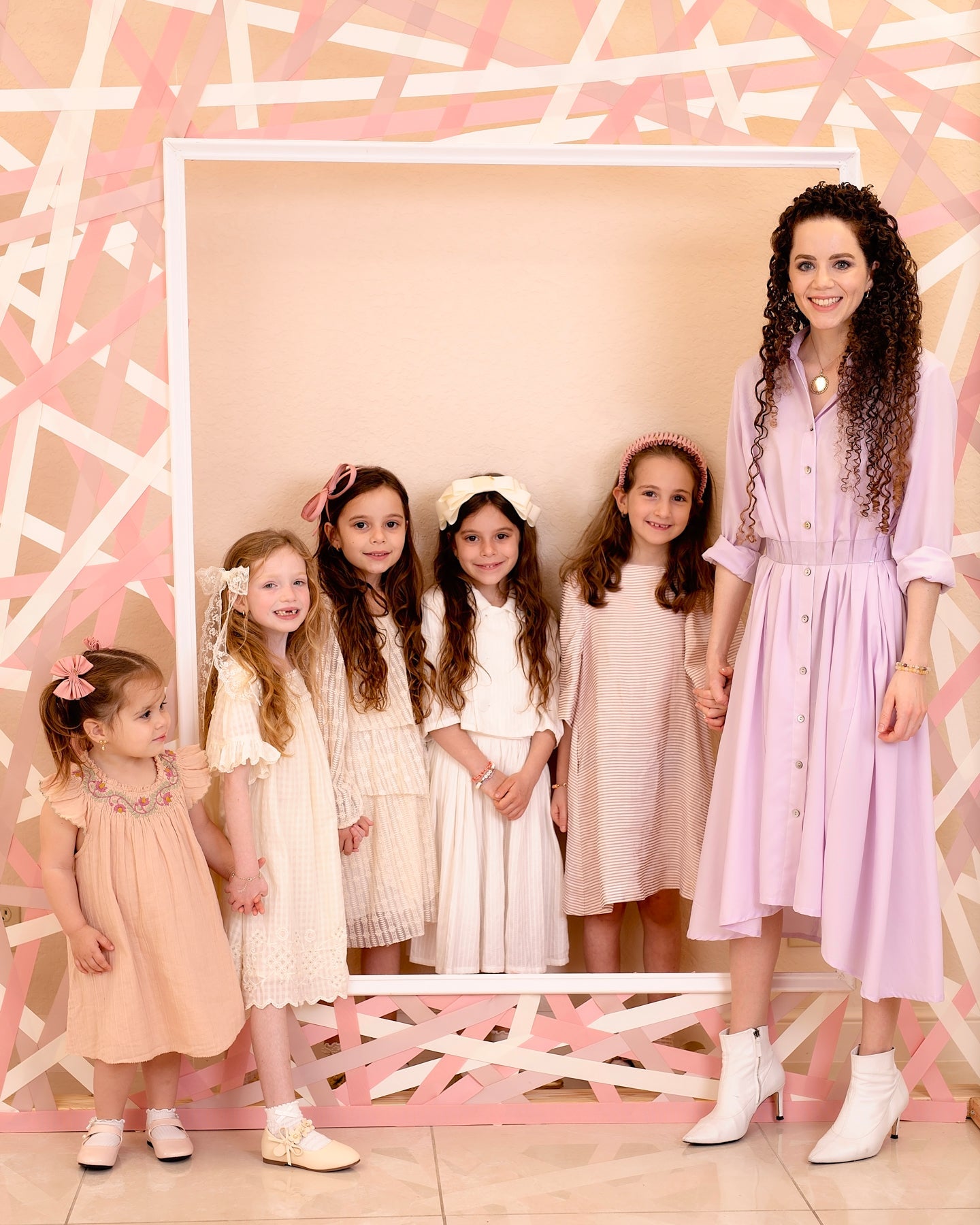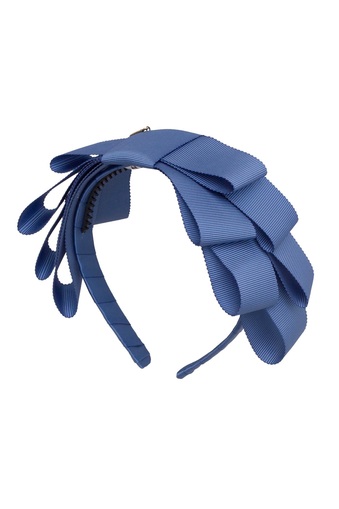 I fell in love with petersham ribbon, which is similar to grosgrain ribbon but has a scalloped-like edge, when we made our Grosgrain Bow Clip Sets. I wanted to create a collection using Petersham Ribbon. The first headband we made was this one! This headband's inspiration came from two of our other popular styles: Heather and Pleated Ribbon. It was created using wide ribbon formed in uneven loops to create this lovely style! Look how it looks on our models!