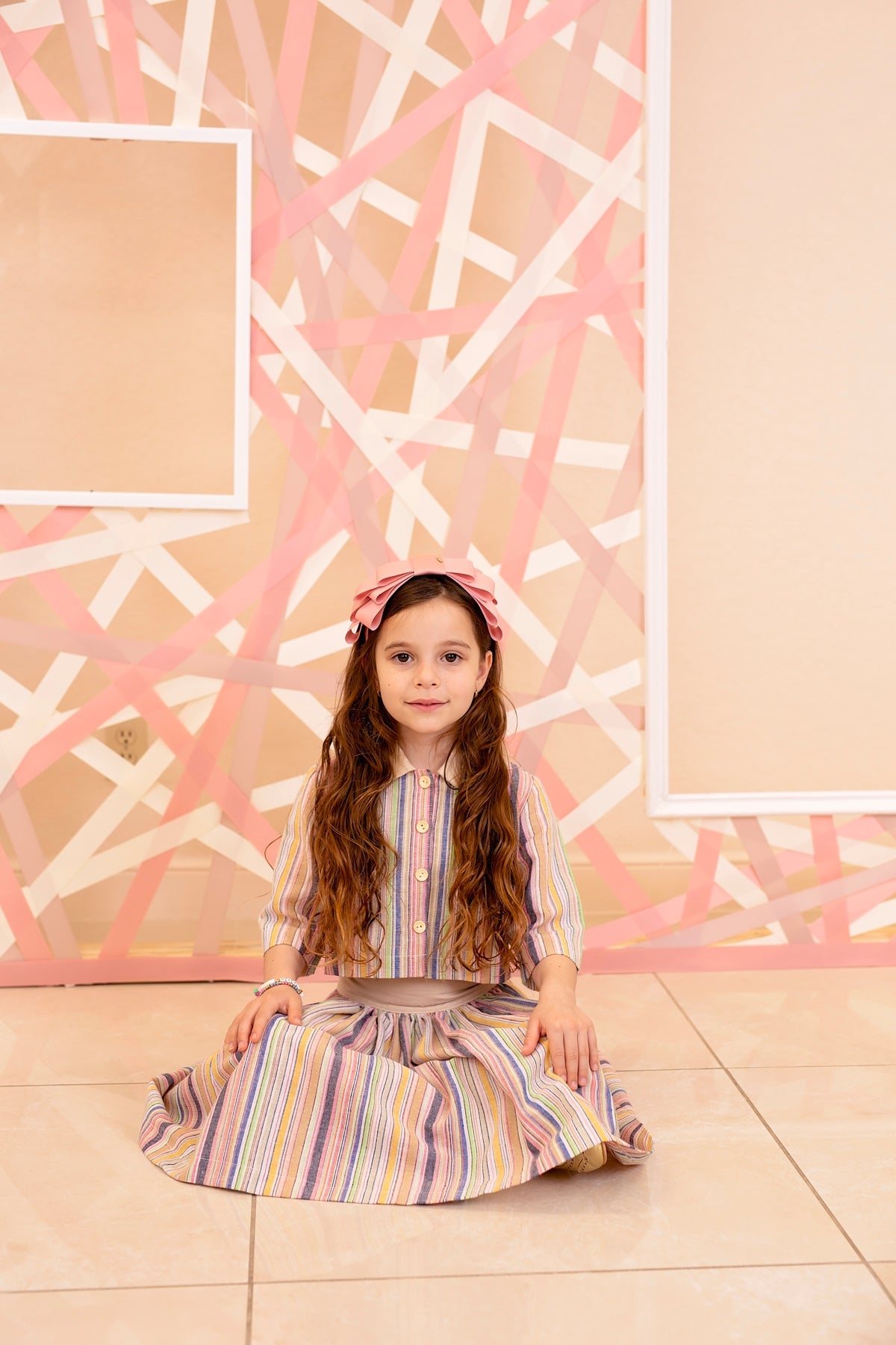 I fell in love with petersham ribbon, which is similar to grosgrain ribbon but has a scalloped-like edge, when we made our Grosgrain Bow Clip Sets. I wanted to create a collection using Petersham Ribbon. The first headband we made was this one! This headband's inspiration came from two of our other popular styles: Heather and Pleated Ribbon. It was created using wide ribbon formed in uneven loops to create this lovely style! Look how it looks on our models!