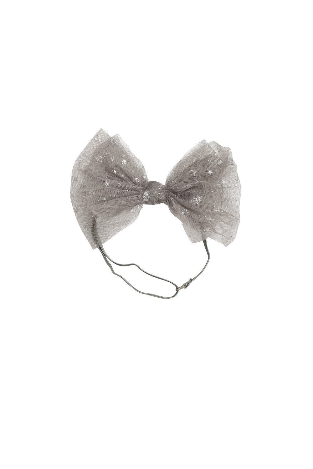 Ava Star Headband is a fine tulle bow with tiny stars in silver or a combination of silver and gold stars on a headband or hairwrap.
