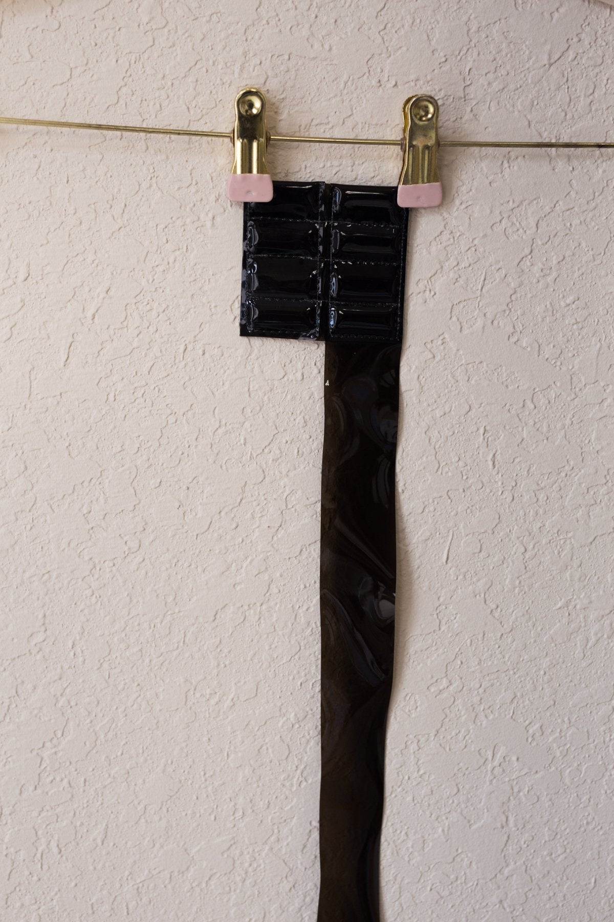 Project 6's Aviv Petit is a thin pvc belt with a row of metal to fasten. (1.5" wide)