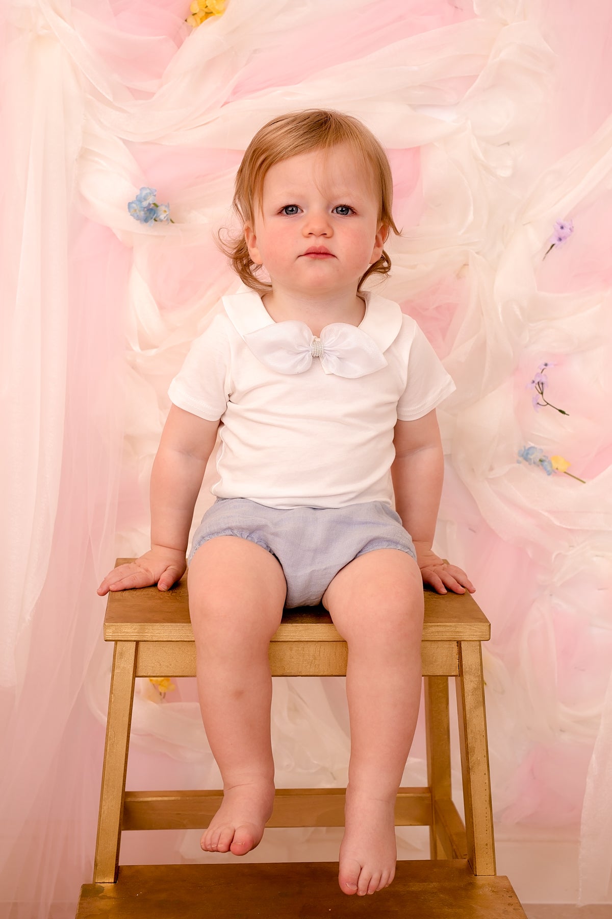 This is a brand new bow shape we added this season. We made it in 2 different fabrics: a beatiful embroidered/tulle and also this organza fabric. The beaded center ties the whole look together so beautifully! Wear it as a hair bow or as a bowtie! Size: About 5.5" wide.