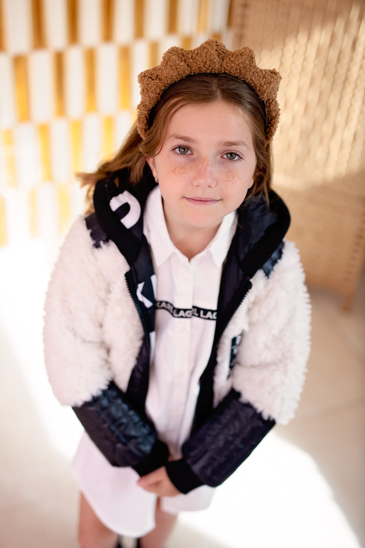We used this fabric once before in hair clips (Olly Rounds and Olly Logs). I wanted to use it again because it's just so cozy and cool and goes perfect with our Texture collection. I love the way it came out in our Mountain Queen style.