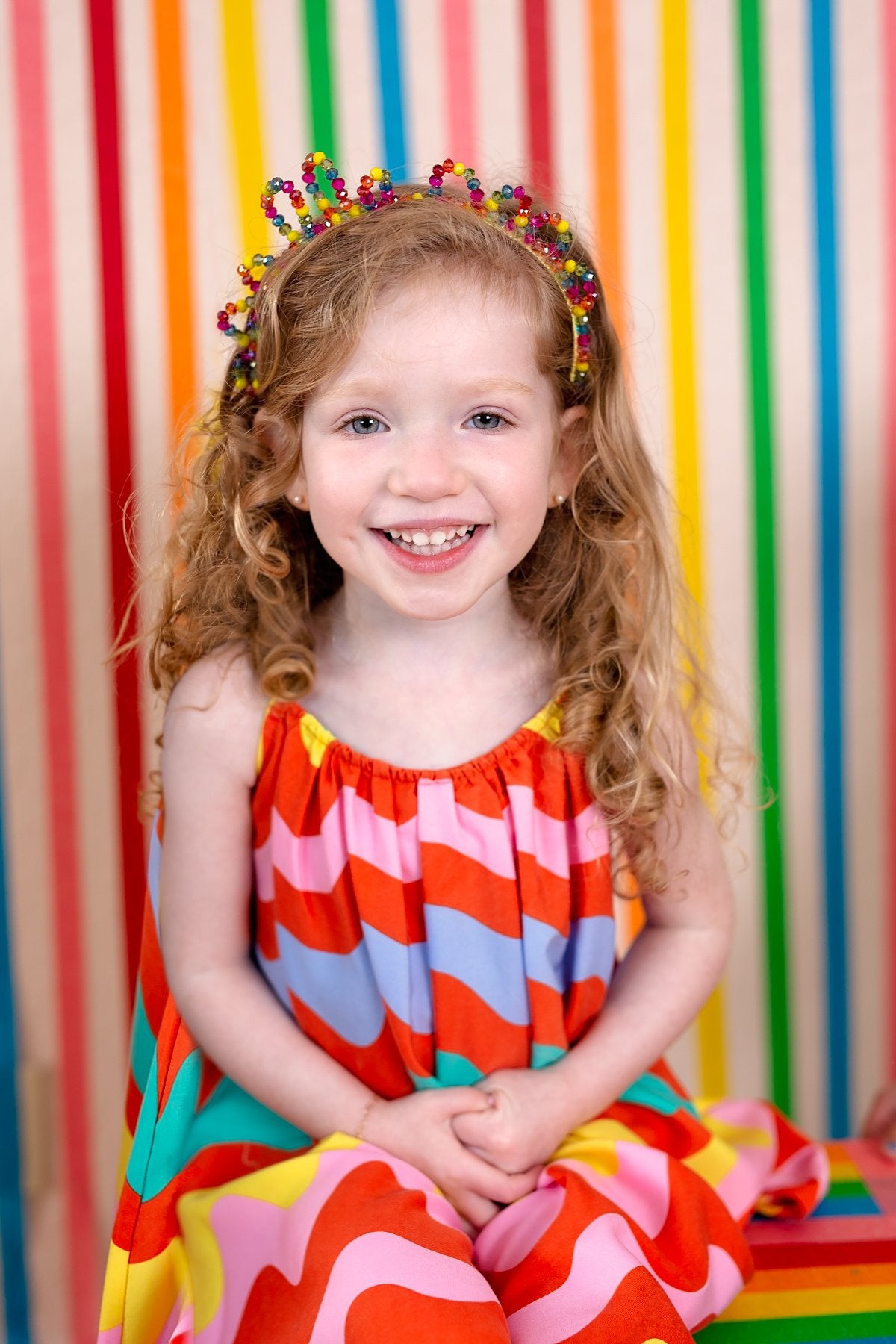 I still have my glass bead collection from when I was little. I must have started the collection around age 10. As an adult, I've taken it out several times to design a special piece for a friend or niece. This season, I took it out for you! This season, I was inspired by the most beautiful rainbow I've ever seen in my entire life. It literally took my breath away! So, I wanted to use little colorful glass beads which let in light and make the colors that much more pretty! Our Glass Princess Headband defies symmetry, the loops are not the same size. I'm trying to break out of my comfort zone and what better way to do it then play around without symmetry. I couldn't believe that I ended up loving this more than if it had been symmetrical!