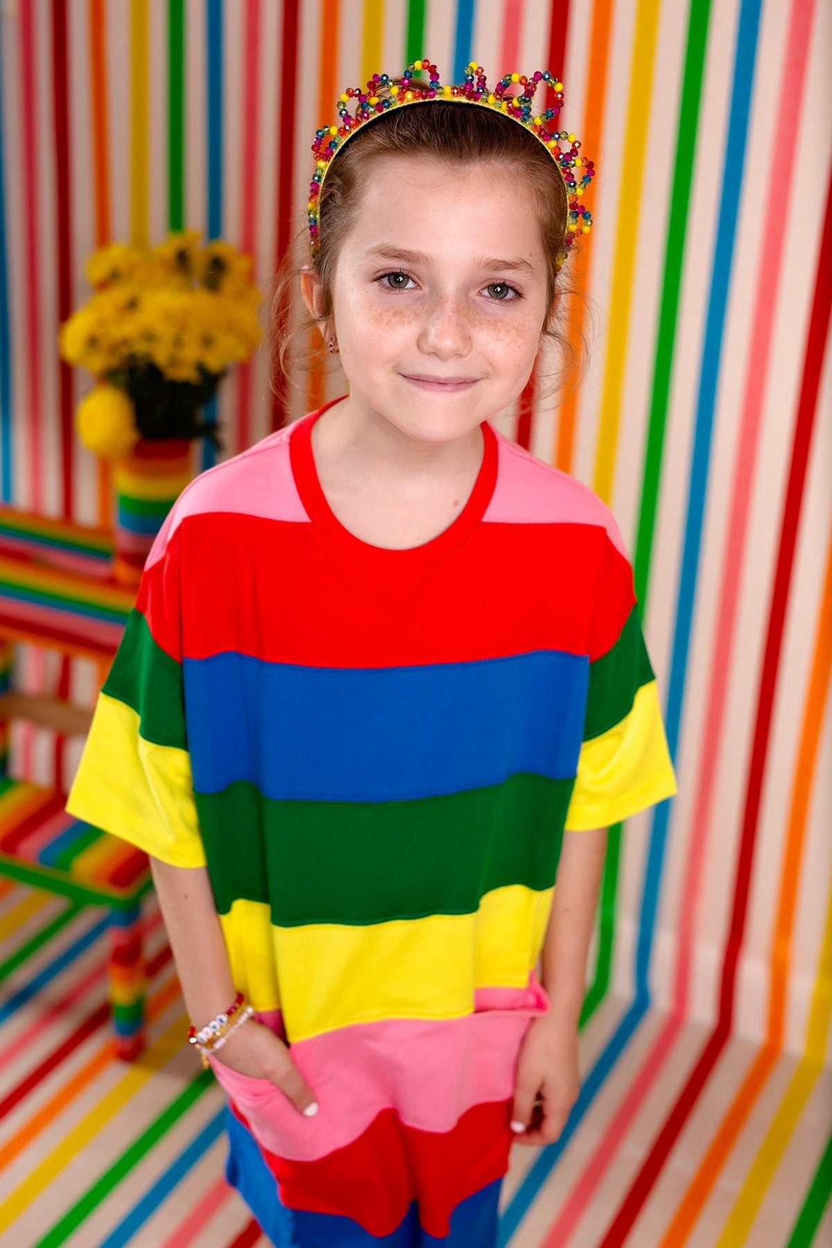 I still have my glass bead collection from when I was little. I must have started the collection around age 10. As an adult, I've taken it out several times to design a special piece for a friend or niece. This season, I took it out for you! This season, I was inspired by the most beautiful rainbow I've ever seen in my entire life. It literally took my breath away! So, I wanted to use little colorful glass beads which let in light and make the colors that much more pretty! Our Glass Princess Headband defies symmetry, the loops are not the same size. I'm trying to break out of my comfort zone and what better way to do it then play around without symmetry. I couldn't believe that I ended up loving this more than if it had been symmetrical!