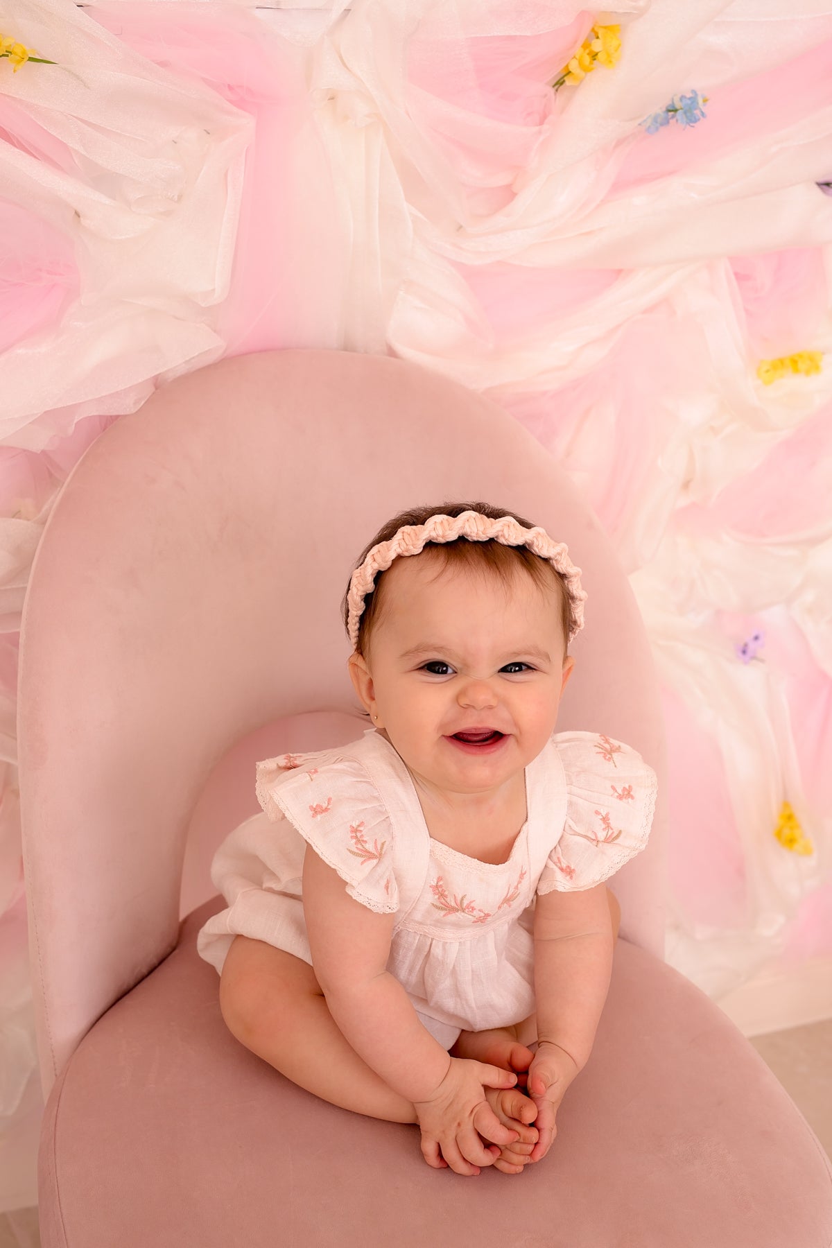 To say we spent a lot of time sourcing the right threads for this style would be an understatement! In the end, we settled on two different threads and choose colors from both of them. We sourced the threads in Mexico and Brazil. Then, we had each of these macrame styles handmade by women in Colombia. The Helix styles come in a hard headband and also a baby adjustable wrap. Our wraps can fit baby all the way to adult, though! The baby model pictured is 10 months old.