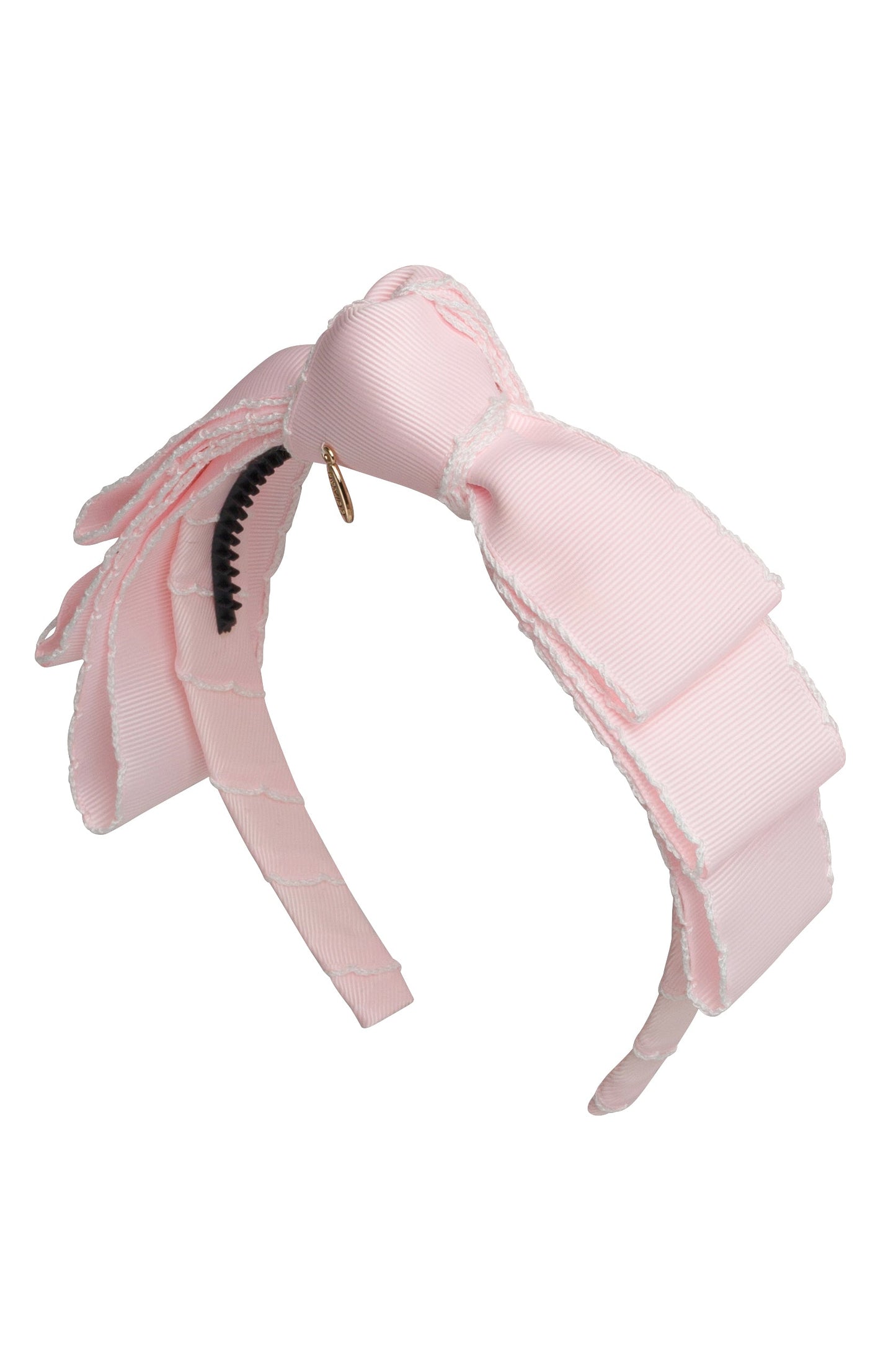 This headband brings together two beloved designs—the structured layers of our Heather Headband and the effortless elegance of a classic knot. Made from grosgrain ribbon with delicate moon-stitched edging, it features a a triple layer bow with a knot at its center.