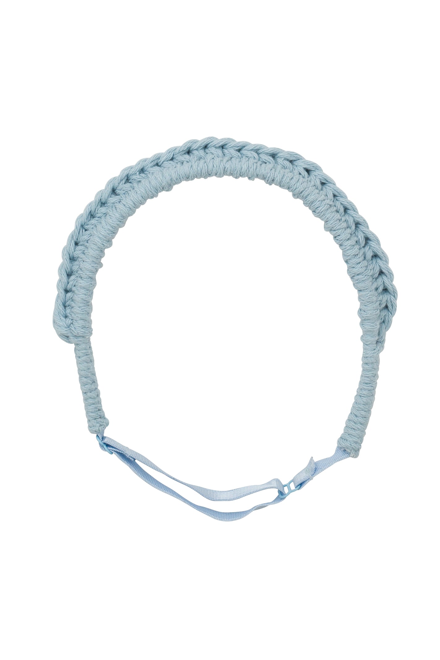 To say we spent a lot of time sourcing the right threads for this style would be an understatement! In the end, we settled on two different threads and choose colors from both of them. We sourced the threads in Mexico and Brazil. Then, we had each of these macrame styles handmade by women in Colombia. The Links styles come in a hard headband and also a baby adjustable wrap. Our wraps can fit baby all the way to adult, though! The baby pictured is 10 months old.