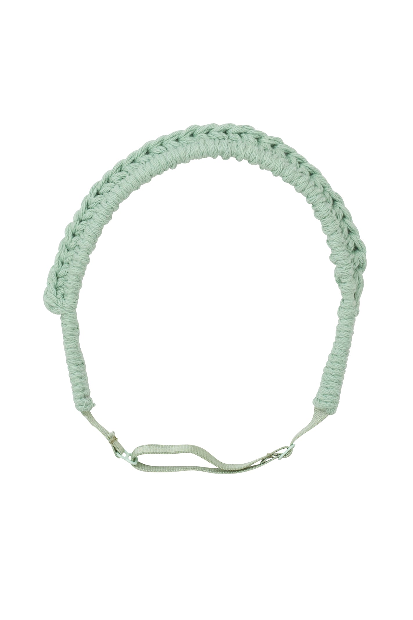 To say we spent a lot of time sourcing the right threads for this style would be an understatement! In the end, we settled on two different threads and choose colors from both of them. We sourced the threads in Mexico and Brazil. Then, we had each of these macrame styles handmade by women in Colombia. The Links styles come in a hard headband and also a baby adjustable wrap. Our wraps can fit baby all the way to adult, though! The baby pictured is 10 months old.