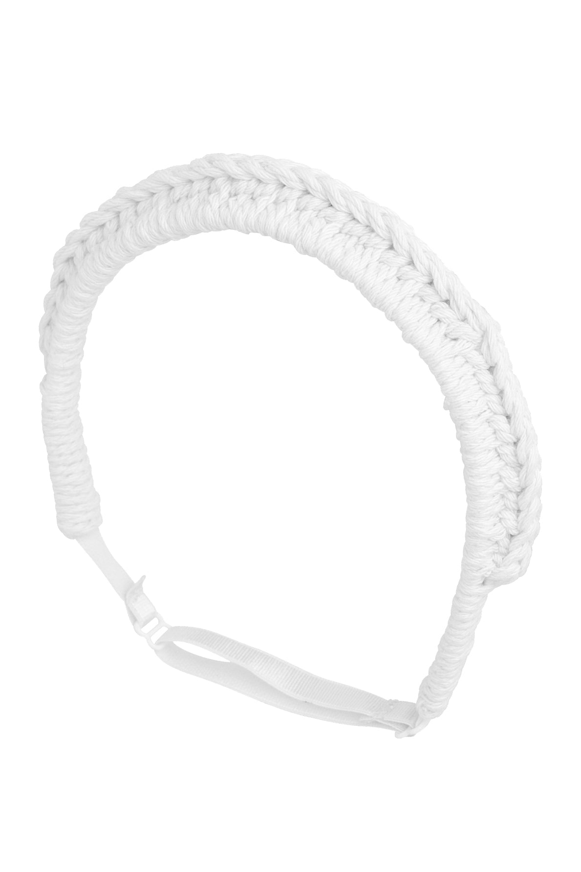 To say we spent a lot of time sourcing the right threads for this style would be an understatement! In the end, we settled on two different threads and choose colors from both of them. We sourced the threads in Mexico and Brazil. Then, we had each of these macrame styles handmade by women in Colombia. The Links styles come in a hard headband and also a baby adjustable wrap. Our wraps can fit baby all the way to adult, though! The baby pictured is 10 months old.