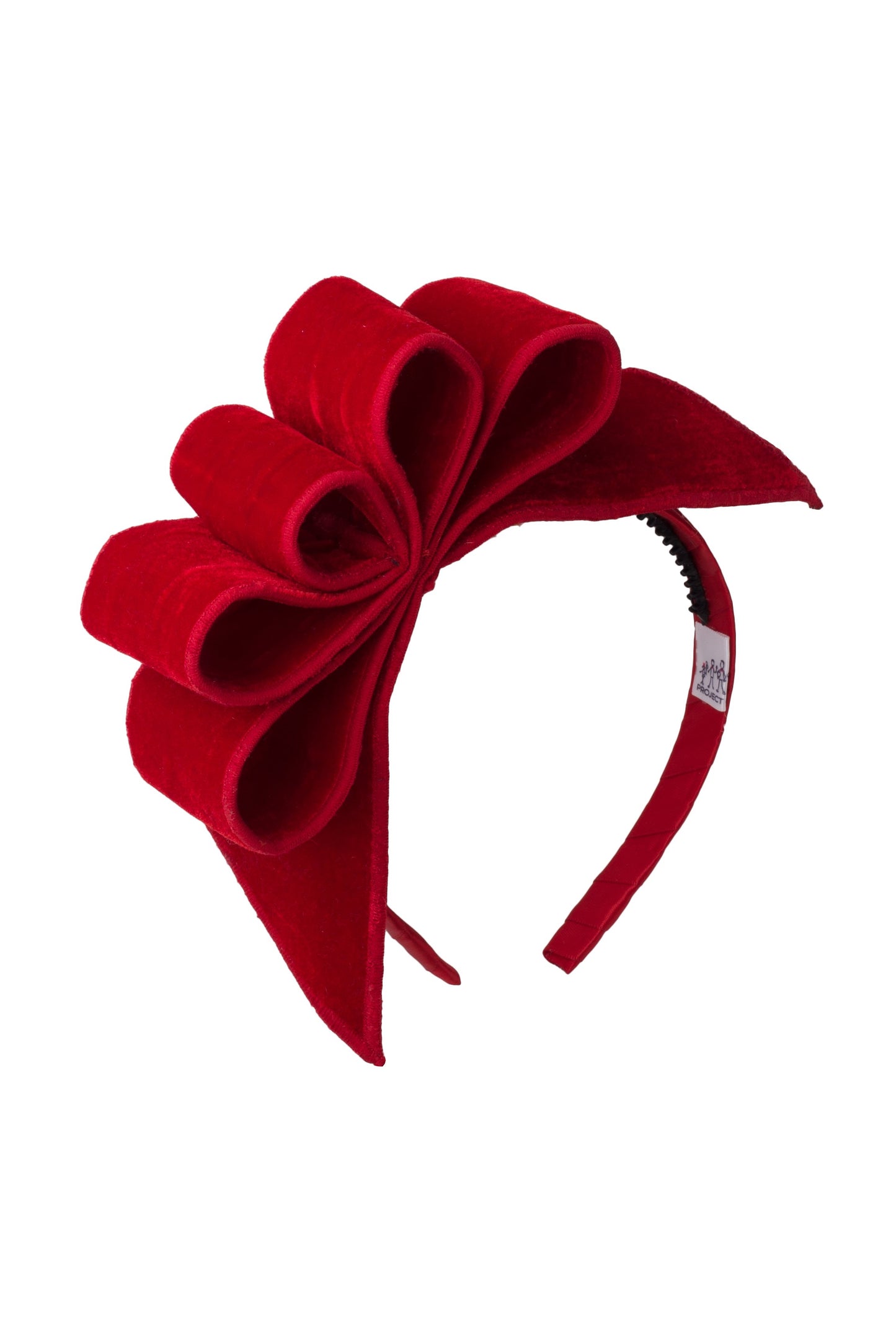 This stunner took a while to perfect. There is wire in between the layers of fabrics that form the loops, so the loops can be flattened or opened.