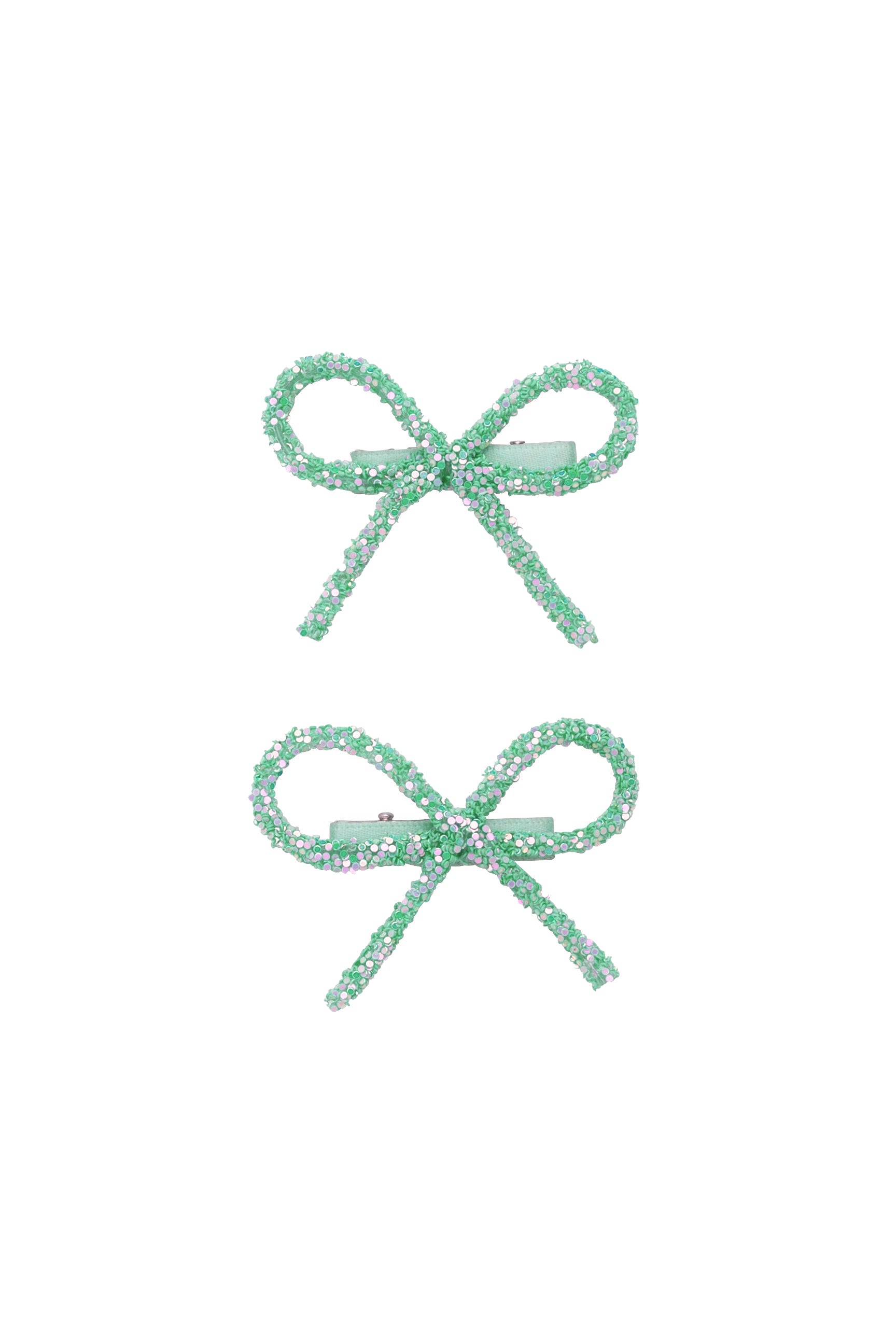 Mini Glitter Bows Clip Set of 2 - Light Turquoise