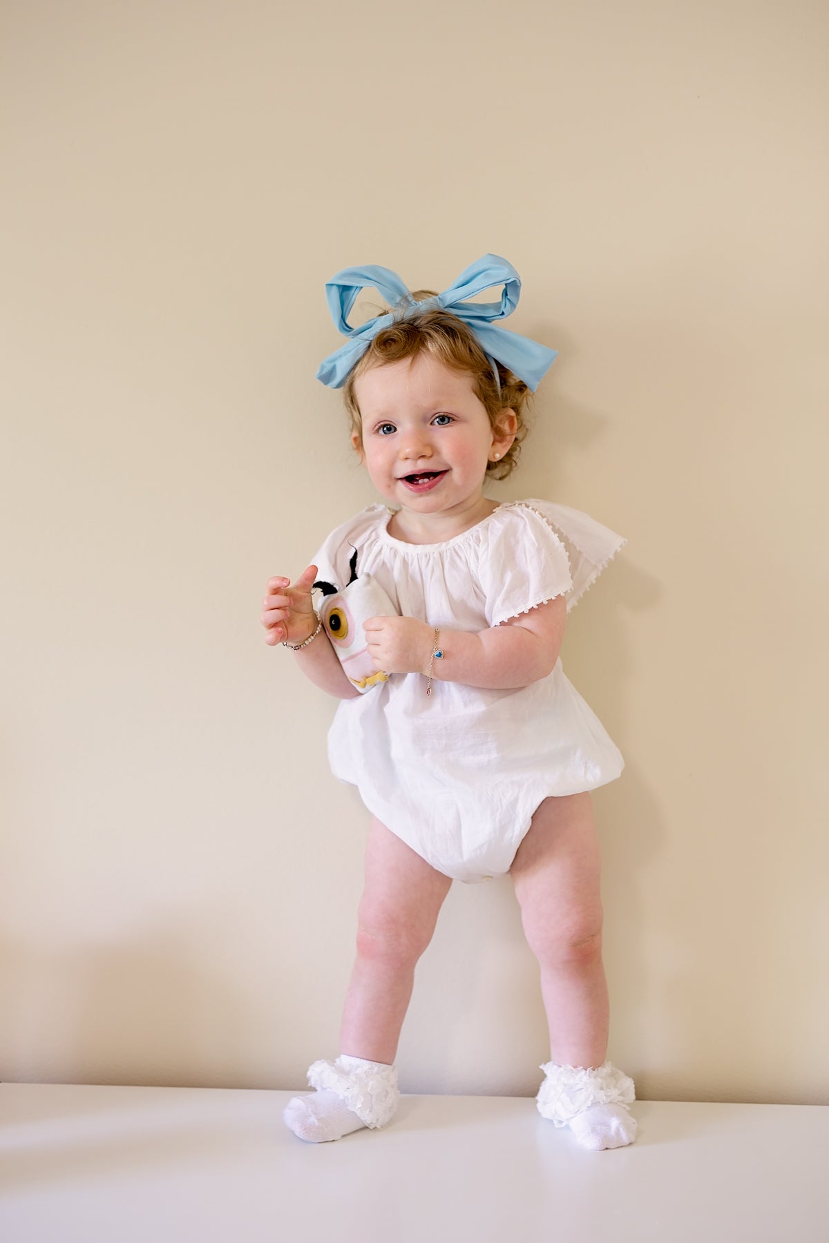 Wire loops covered in taffeta forming a bow on an adjustable wrap.