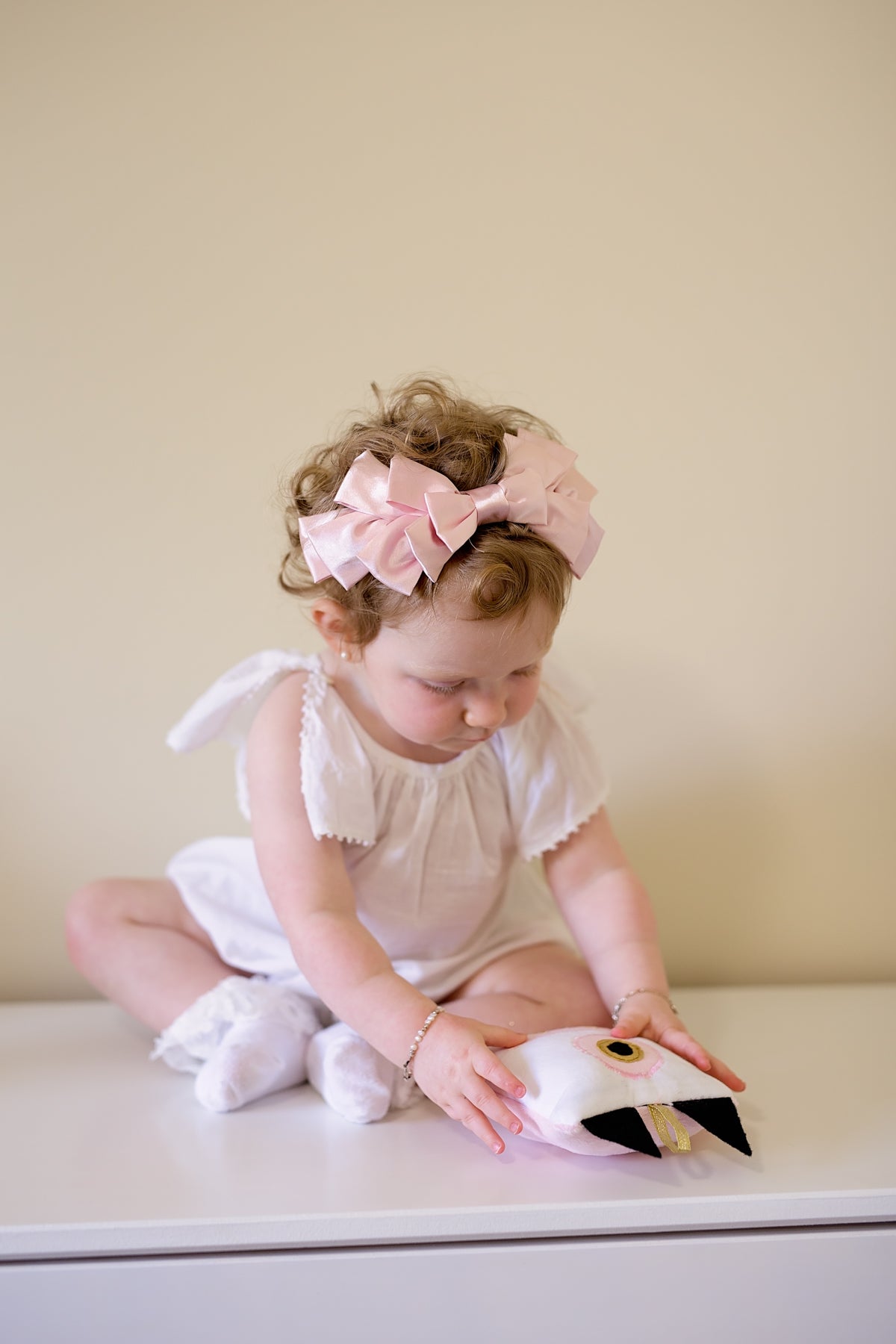 Layers of satin folded and sewn to create a cascading pleated look on an adjustable wrap.