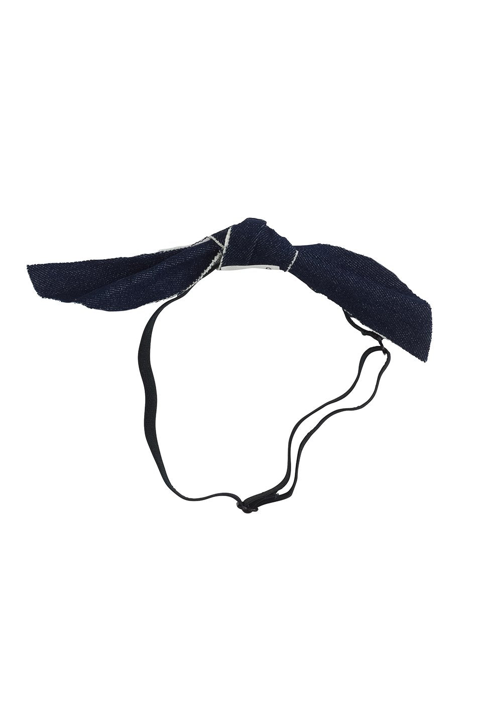 Denim Baby wrap on an adjustable elastic with a simple bow in the center.