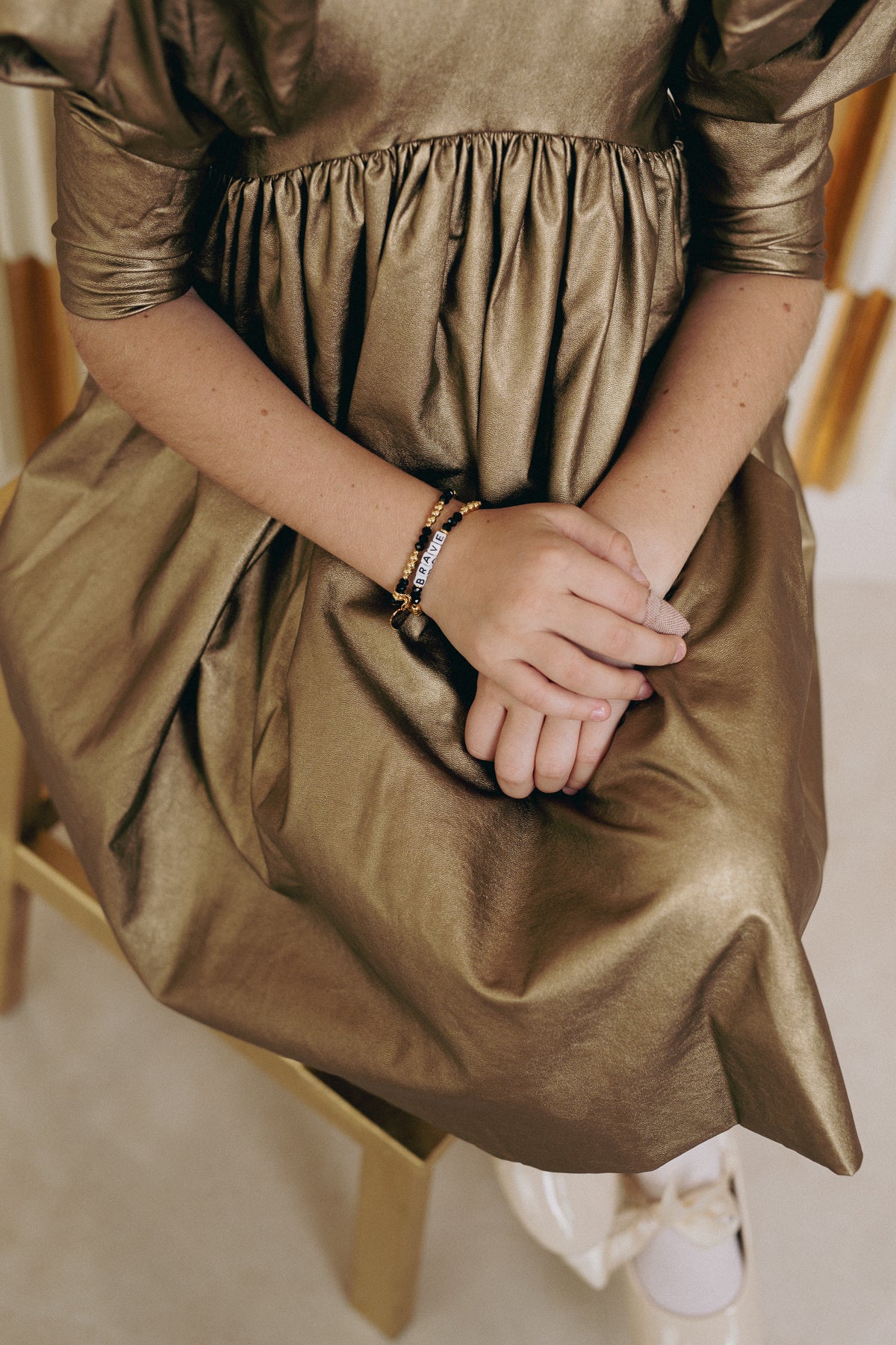 Those who know me well, know that I'm super passionate about making children feel safe and seen. (I have another company called theME&MY that's dedicated to this!). But I'm also passionate about kids accessories, so I've merged the two! Our Power bracelets are a set of 2 bracelets - One is a beautiful bracelet with 2-3 color beads. The second is a matching bracelet, but it also has a word. These words act as little mantras for your kids, to give a little encouragement, love, and a little reminder of what You - Mama - want to remind them when you aren't near them: That they're BRAVE, LOVED, KIND, that they MATTER, that they CAN do anything, and when they are feeling a little anxious, they can BREATHE and just LET IT GO.