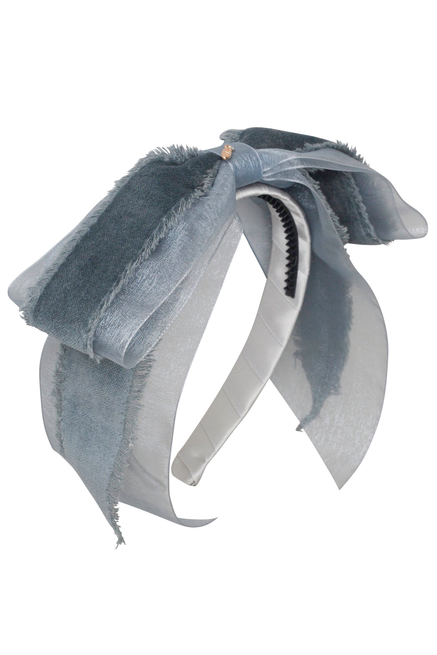 A stunning bow inspired headband with organza and a velvet-like material with fringe. It's a piece of art, you'll see!