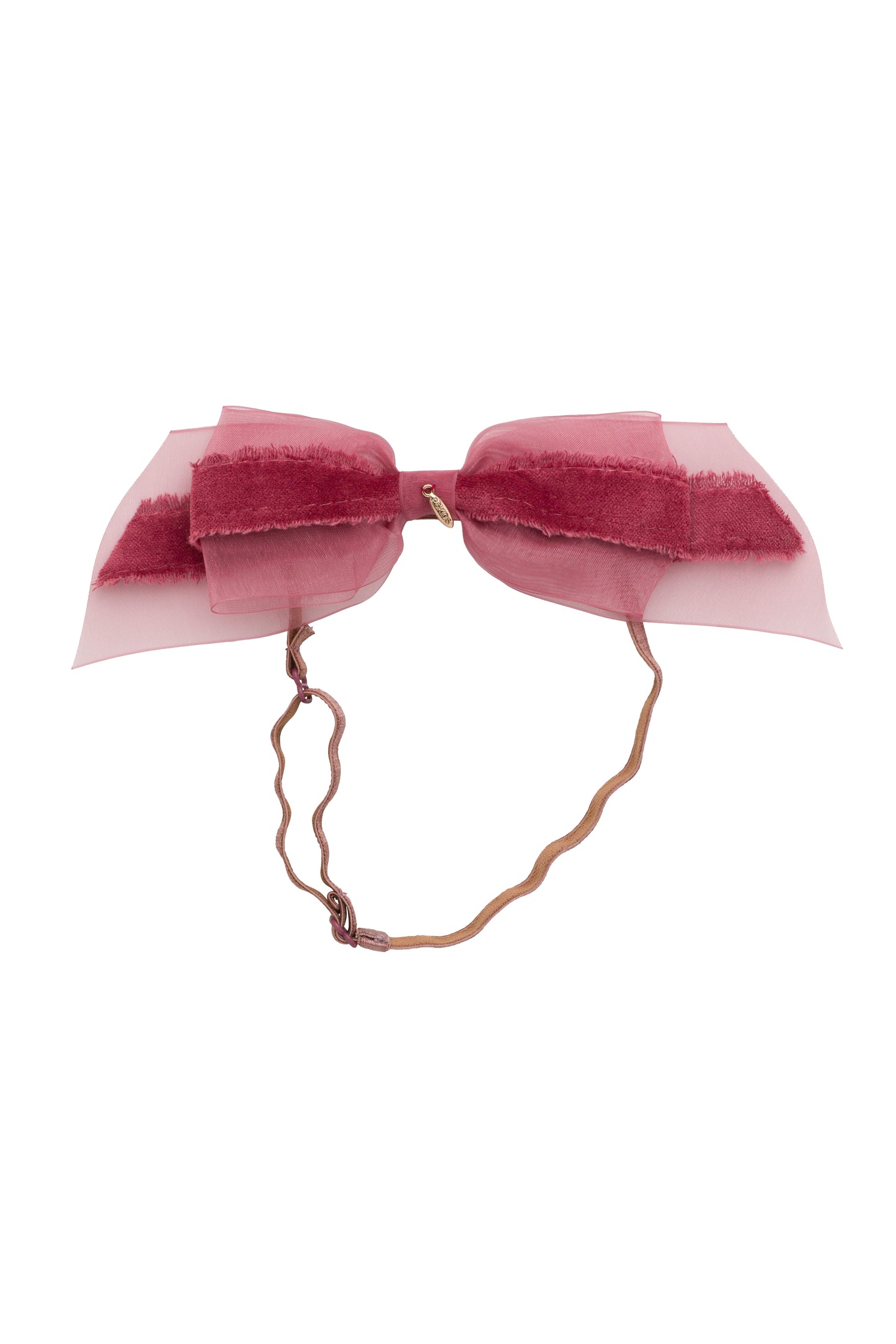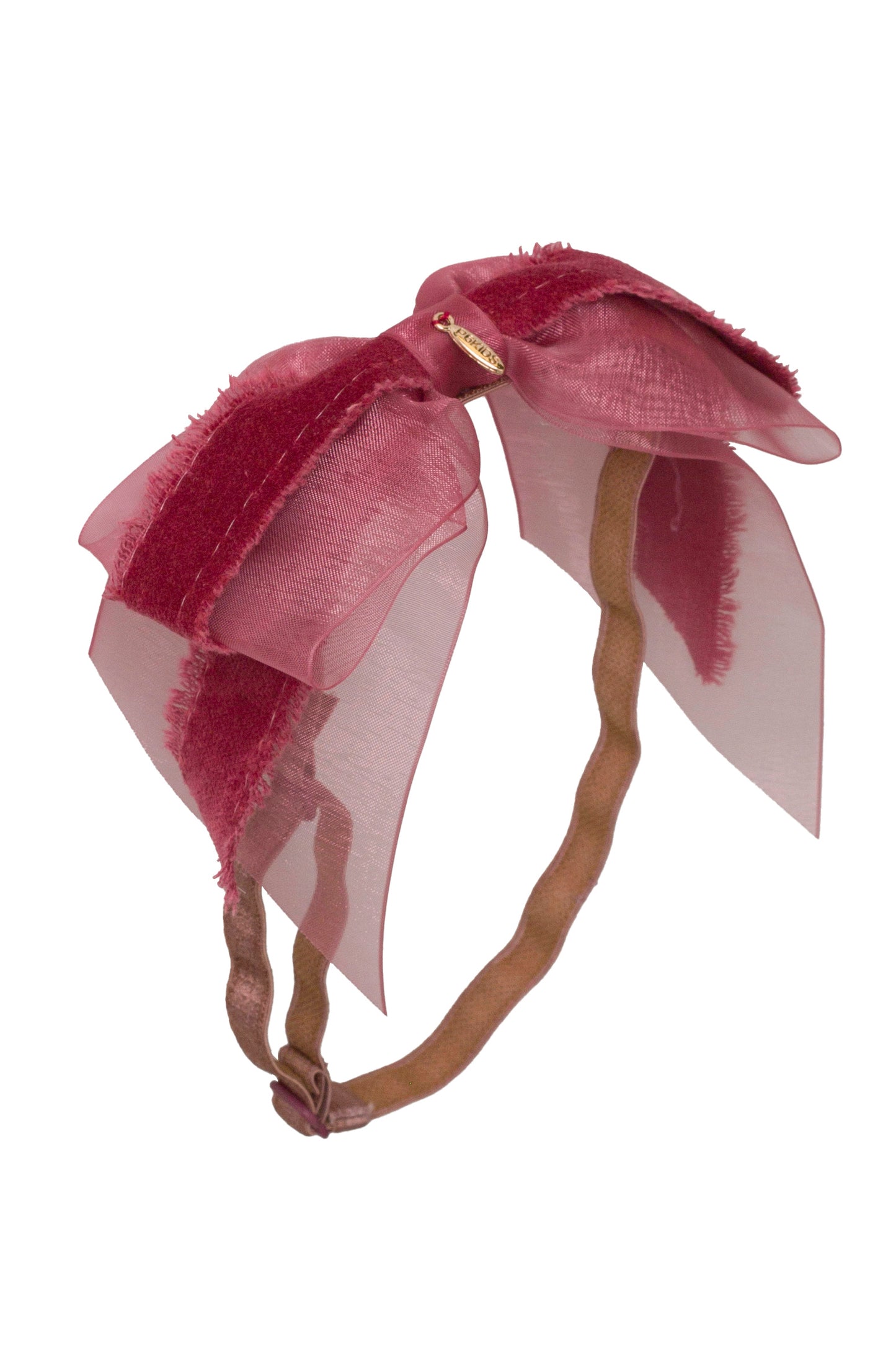 A stunning bow inspired adjustable hair wrap with organza and a velvet-like material with fringe. It's a piece of art, you'll see!