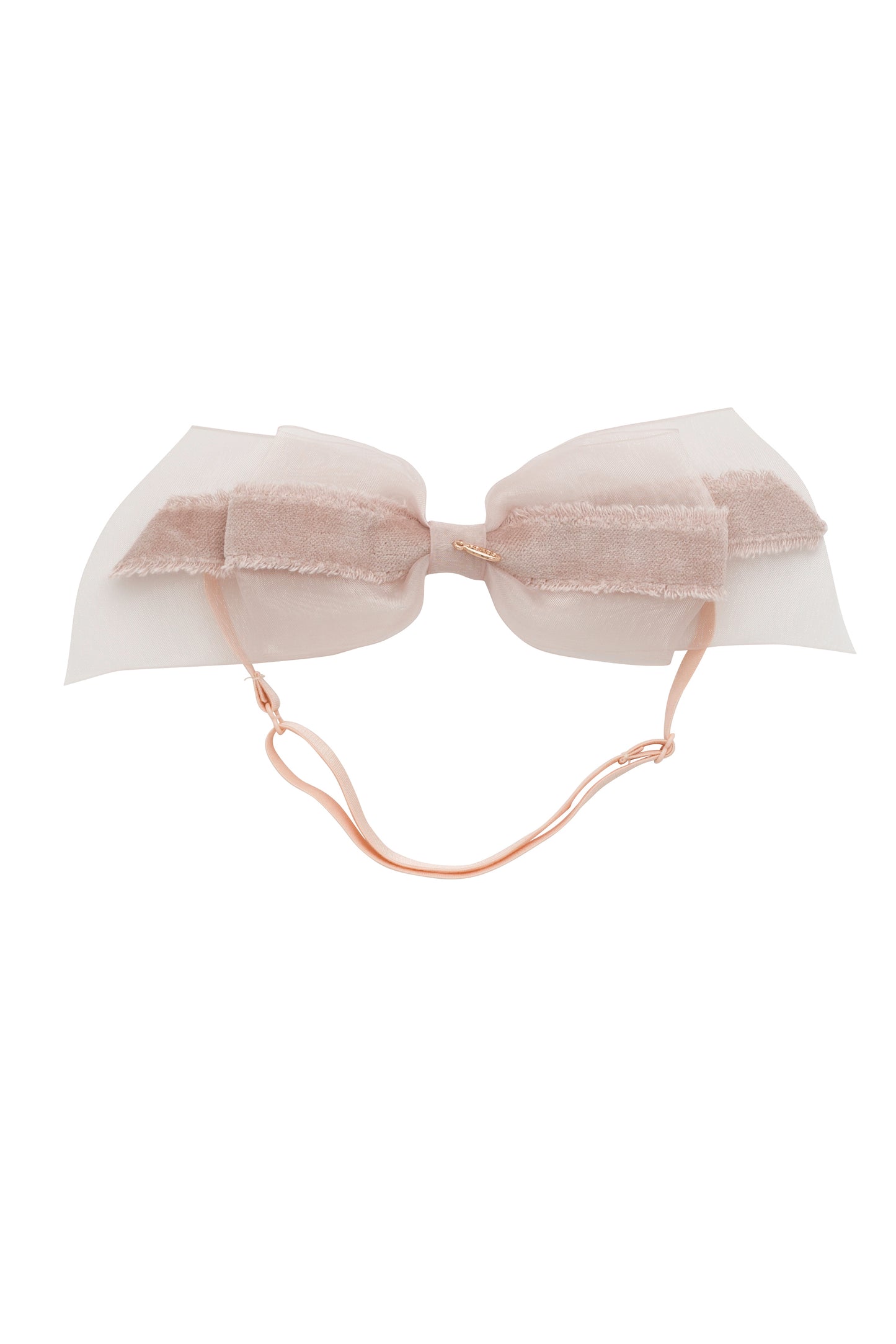 A stunning bow inspired adjustable hair wrap with organza and a velvet-like material with fringe. It's a piece of art, you'll see!