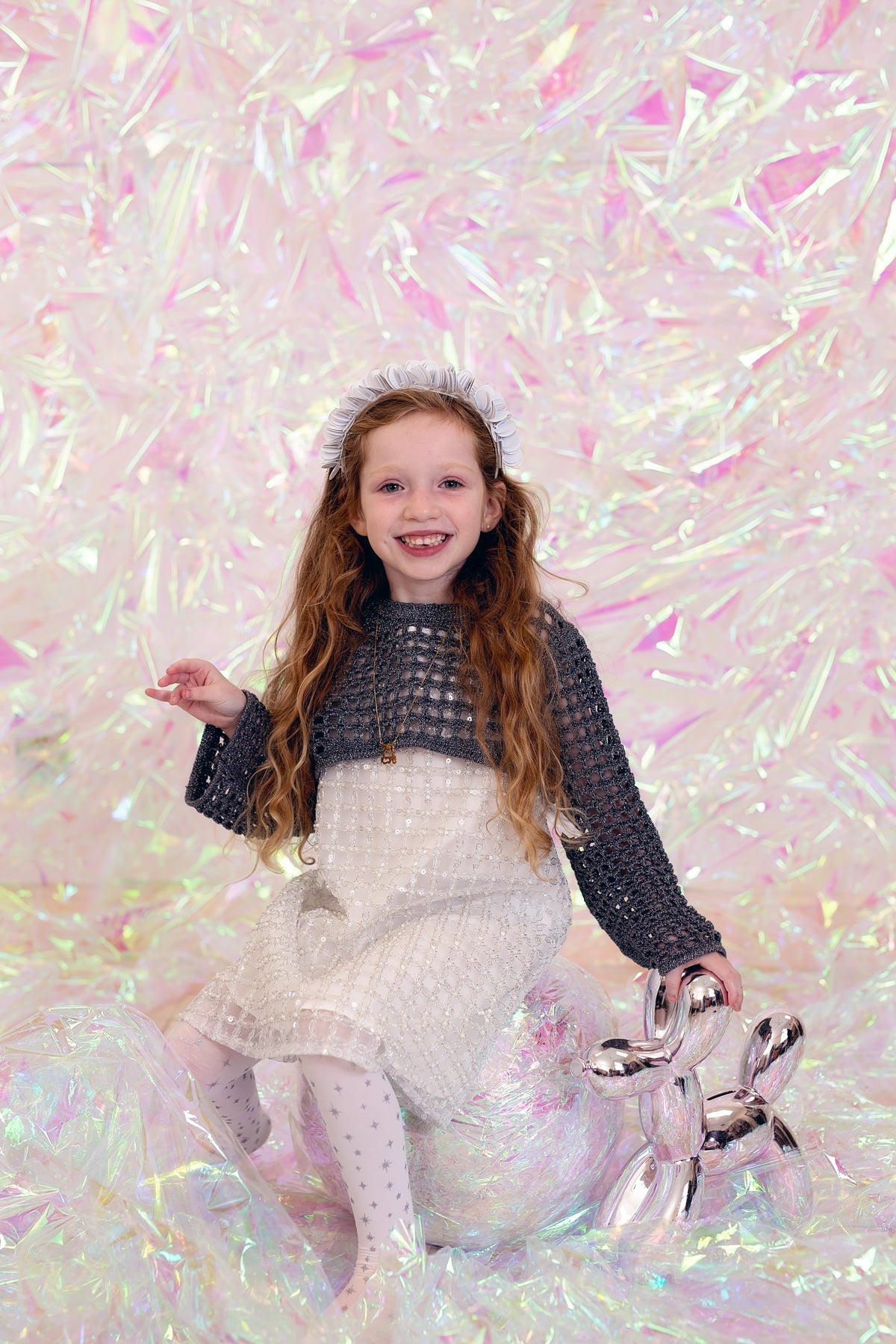 Sequin Blooms Headband - Silver
