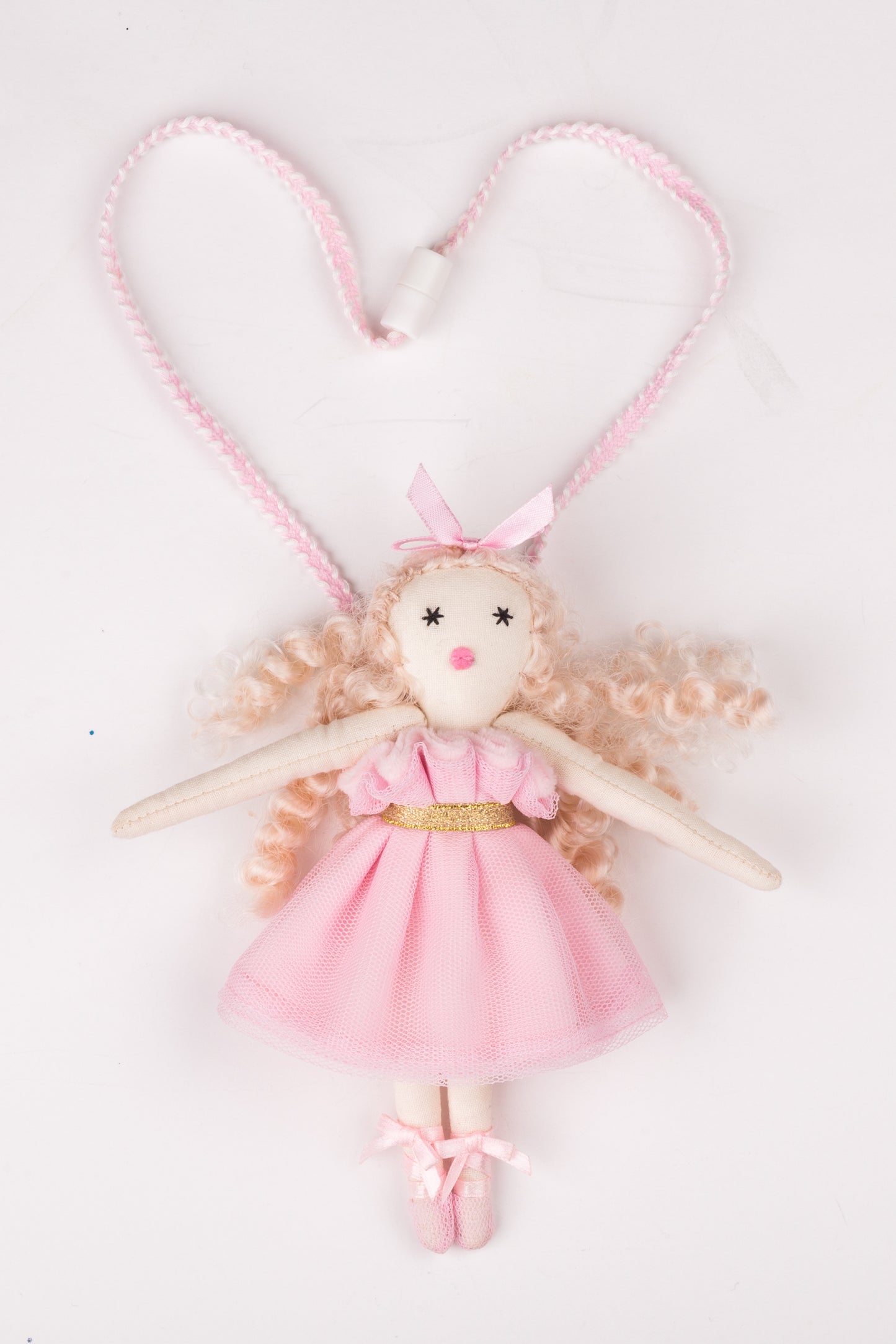 THE DETAILS: The details on the doll will make you want to buy one for yourself, too! See for yourself in the product images! theMe&My Lilly doll has ballet shoes with ribbon lace ups. She has curly blonde hair with a pink ribbon bow in her hair. Her eyes are stitched in, so you don't have to worry about those falling off! Me & My Lilly wears a beautiful two layer tulle dress over a soft plush fabric. The dress has a a gold belt. Her dress has a snap closure. In the back of Lilly's neck is a little loop where a necklace can be looped through to convert Lilly to a necklace! That way you can take her wherever you go!