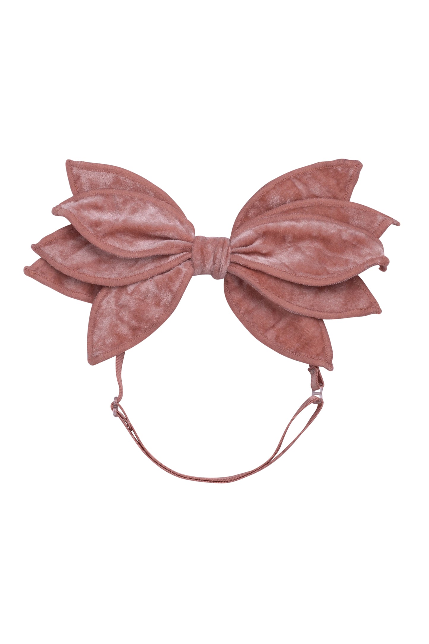 This adjustable wrap has 5 long petals (about 8"), each are two layers of velvet sewn together. The sewing details on the edges add so much to the style.